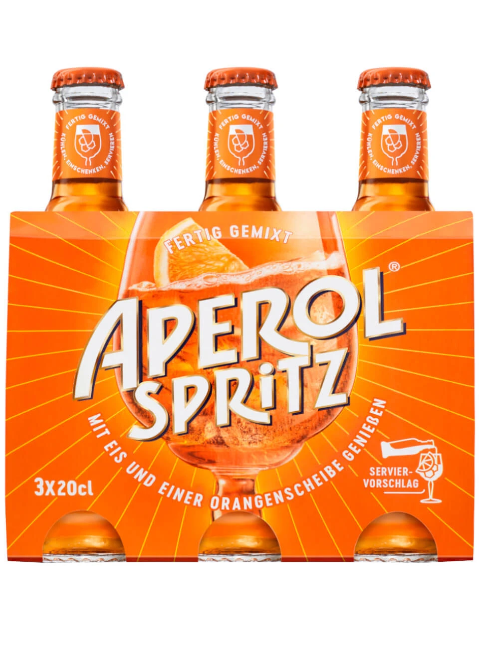Den beliebten Partydrink Aperol Spritz bieten wir Ihnen jetzt – fix und fertig gemischt- im praktischen Dreierpack mit drei Flaschen zu je 0,2l Inhalt an! Einfach eingießen, mit einer Orangenzeste garnieren und genießen!