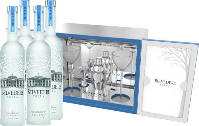 Set bestehend aus insgesamt 2,8l Belvedere Vodka mit 40% Vol. Alc. und einem Belvedere Martini Cocktail Set