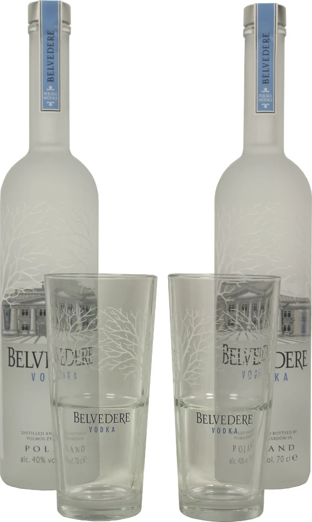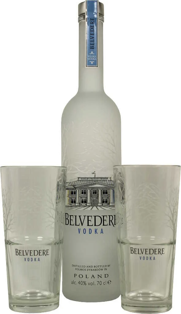 Vodka von Belvedere in der 0,7l Flasche mit 40 % Vol. Alc. und 2 Original Belvedere Gläsern