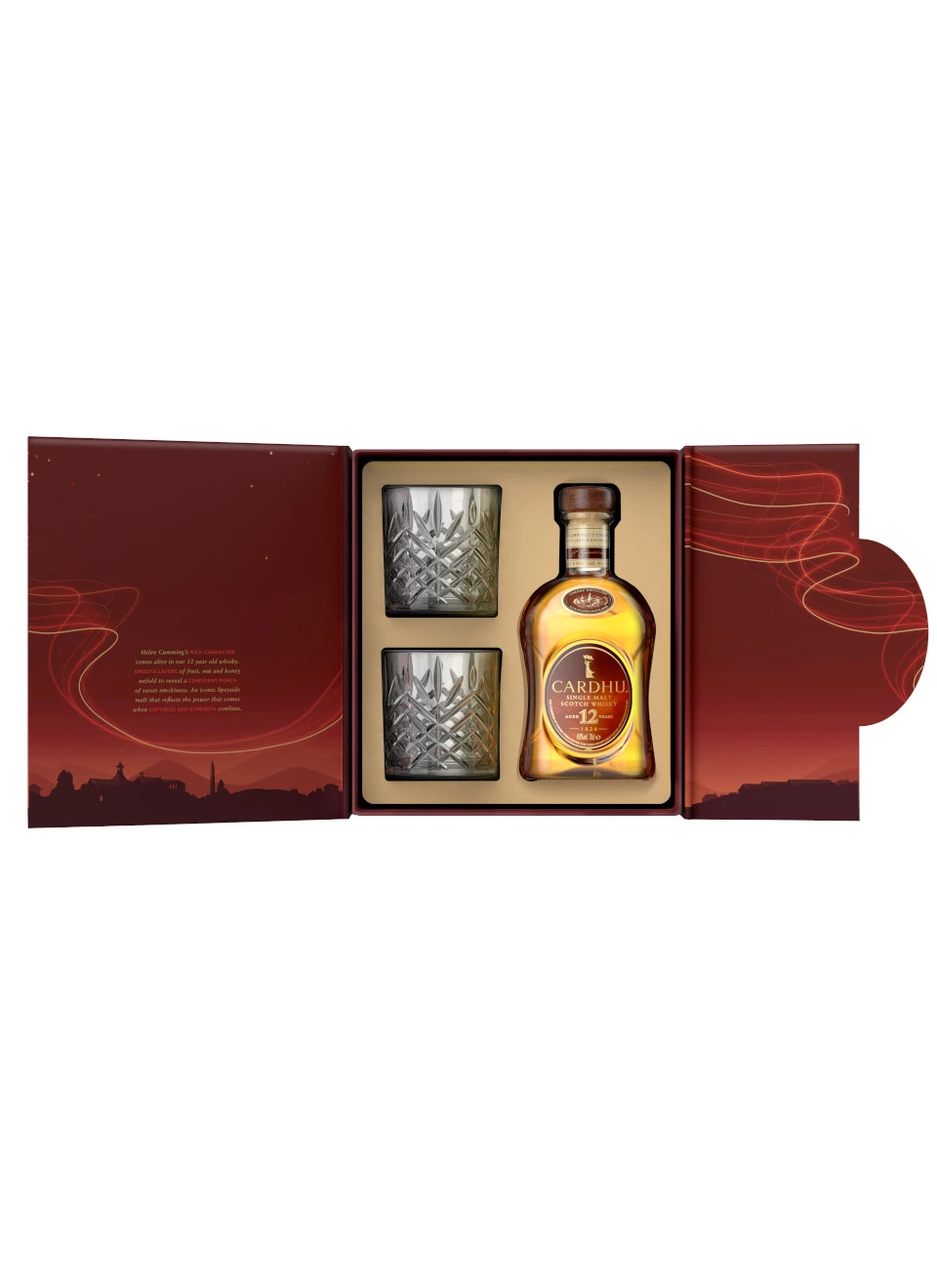Cardhu ist die gälische Schreibweise für Cardow, ein Ortsname, den man auf schottischen Landkarten häufig finden kann. In diesen Orten brannten Farmer (zumeist schwarz) Whisky mit eigener Gerste und vertrieben sie in der direkten Umgebung. Auch John Cumming begann 1810 auf diese Weise in einsamer Lage in den Bergen Single Malt zu destillieren. Nachdem Cumming mehrfach der Schwarzbrennerei angeklagt wurde, beantragte er 1824 eine Brennlizenz und gründete offiziell seine Cardhu Destillerie. 1884 wurde die Destillerie erstmalig erweitert und führte gleichzeitig den Namen Cardhu als Markennamen für den erzeugten Whisky ein. Im Jahr 1893 ging die Destillerie an Johnny Walker über. Das Unternehmen modernisierte und erweiterte nach und nach die alten Brenngebäude. Bereits seit 1922 nutzt Cardhu als erste schottische Brennerei ölbeheizte Stills. Zur Reifung des würzigen Cardhu Single Malt Whisky werden ausschließlich Bourbon-Fässer verwendet, in denen dieser Whisky sein typisches Aroma entwickelt.