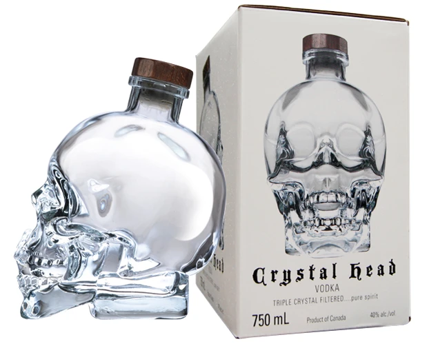 Anders als alle anderen Wodkas wird der Crystal Head Vodka in eine Kristallglasflasche abgefĂŒllt, die von der bekannten MailĂ€nder Firma Bruni Glass entworfen und hergestellt wird: sie hat die Form eines GlasschĂ€dels und erinnert damit an die Legende der so genannten KristallschĂ€del, die angeblich vor Jahrtausenden in verschiedenen Weltgegenden angefertigt wurden und ĂŒber magische KrĂ€fte verfĂŒgen sollen! Kreiert wurde der Vodka in dieser PrĂ€sentation von dem bekannten amerikanischen Schauspieler Dan Aykroyd und seinem Sohn, die sich sehr fĂŒr die Legende dieser KristallschĂ€del interessieren.