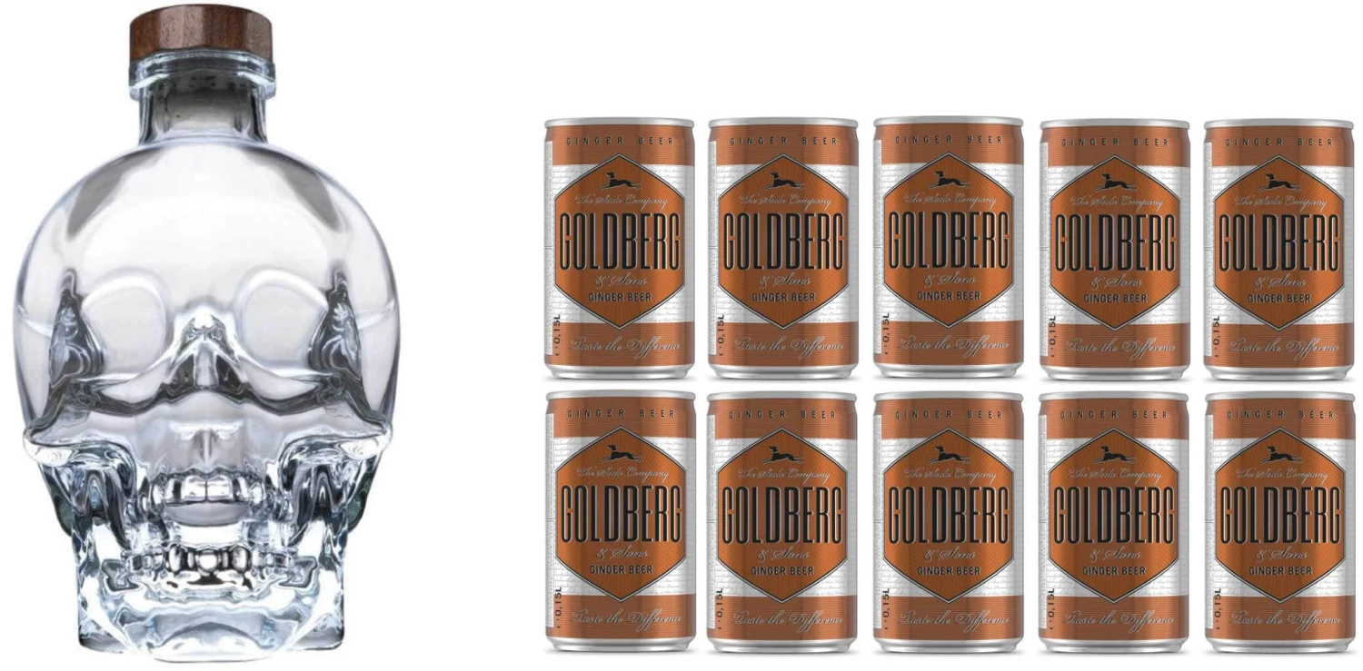 Set aus Crystal Head Vodka und Goldberg Ginger Beer mit insg. 2,2 Litern und bis zu 40% Vol. Alc. und Farbstoff, zzgl. 2,50⏠Pfand