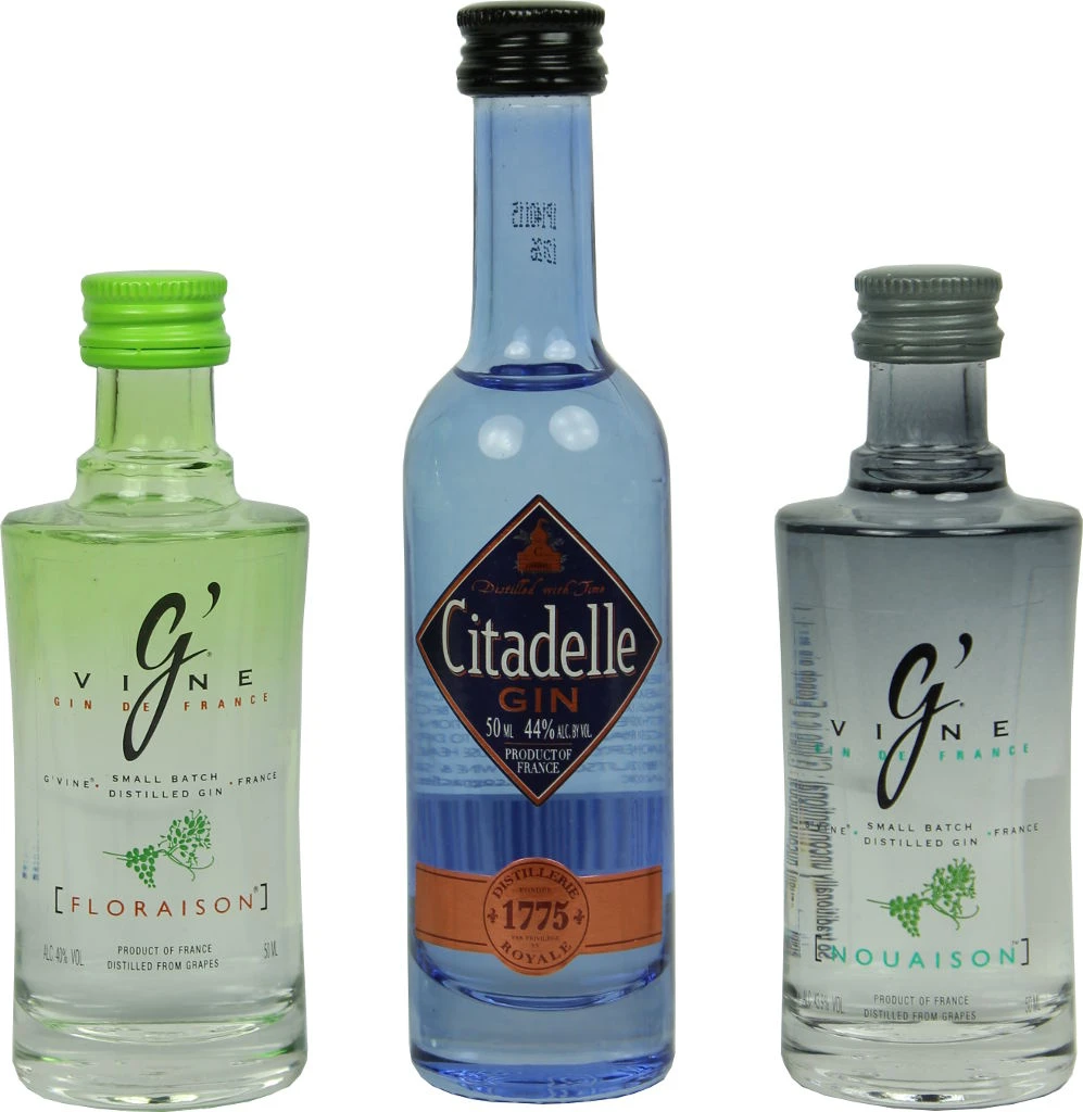 Gin-Auswahl aus Frankreich mit insg. 0.15l und bis zu 44% Vol. Alc.