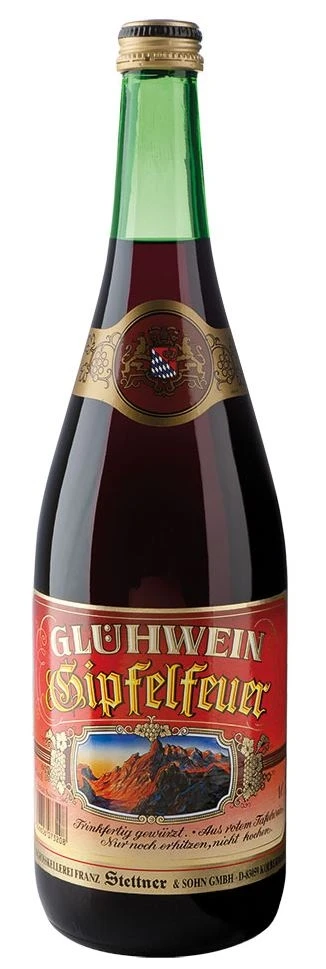 Glühwein von Stettner in der 1l Flasche mit 9 % Vol. Alc. mit Farbstoff