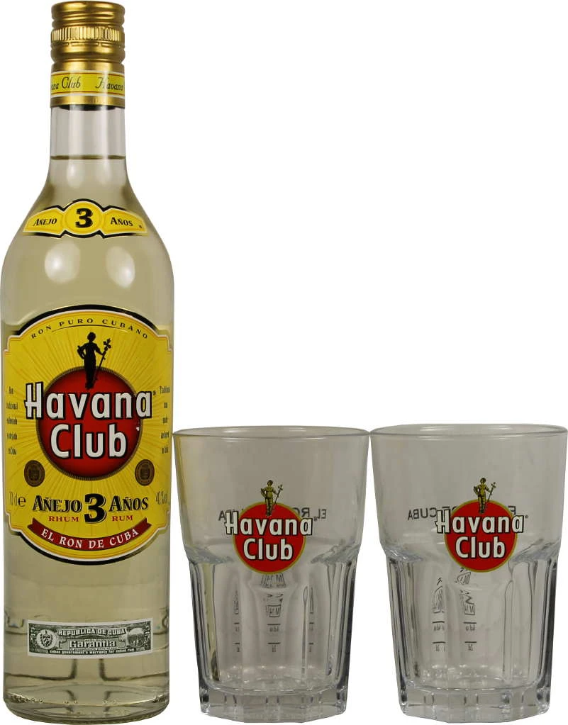 Havana Club Rum 3 Jahre mit 2 Gläsern