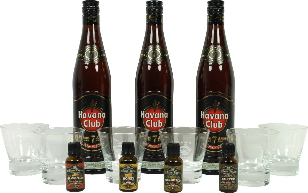 Rum Set von Havana Club und Bitter Truth in 3×0,7l und 4x2cl Flaschen mit 6 Gläsern