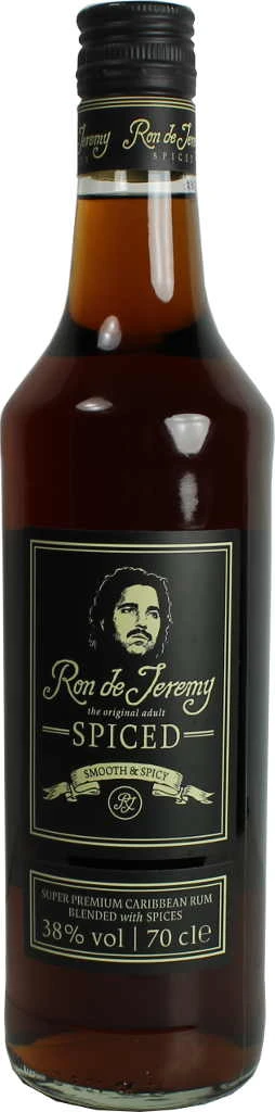 Spirituose von Ron de Jeremy in der 0,7l Flasche mit 38% Vol. Alc. mit Farbstoff