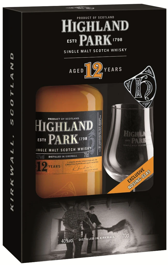 Highland Park 12 Jahre in Geschenkpackung mit Nosingglas – ein schottischer Single Malt Whisky aus der traditionsreichen und weltbekannten Distillery in Kirkwall auf den Orkney Islands. Ăber 200 Jahre Erfahrung in der Whiskyherstellung und einzigartige klimatische EinflĂŒsse sind Grundlage der Rohstoffverarbeitung fĂŒr diesen unverwechselbaren Malt Whisky. Alle Highland Park Whiskys bestechen durch sĂŒĂlich-fruchtige Noten mit Torf- und Honignoten.
