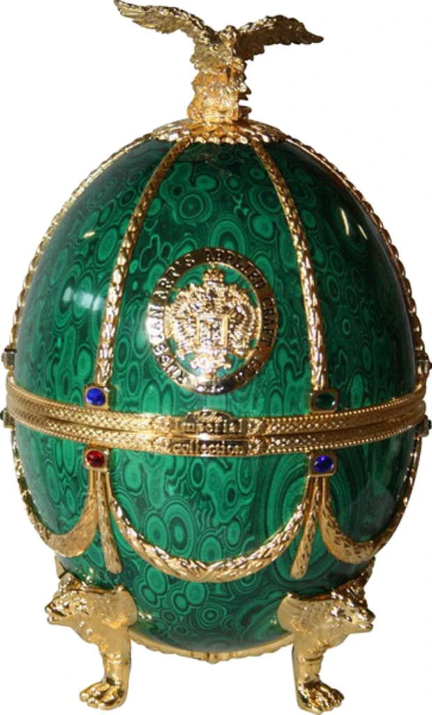 Bei den Flakons für den Imperial Collection Vodka Faberge Ei Grün handelt es sich um originalgetreue, vergrößerte Repliken der unbezahlbaren Fabergé-Eier, die vom russischen Juwelier Carl Fabergé von 1883 bis 1917 alljährlich der englischen Königsfamilie zu Ostern übergeben wurden.