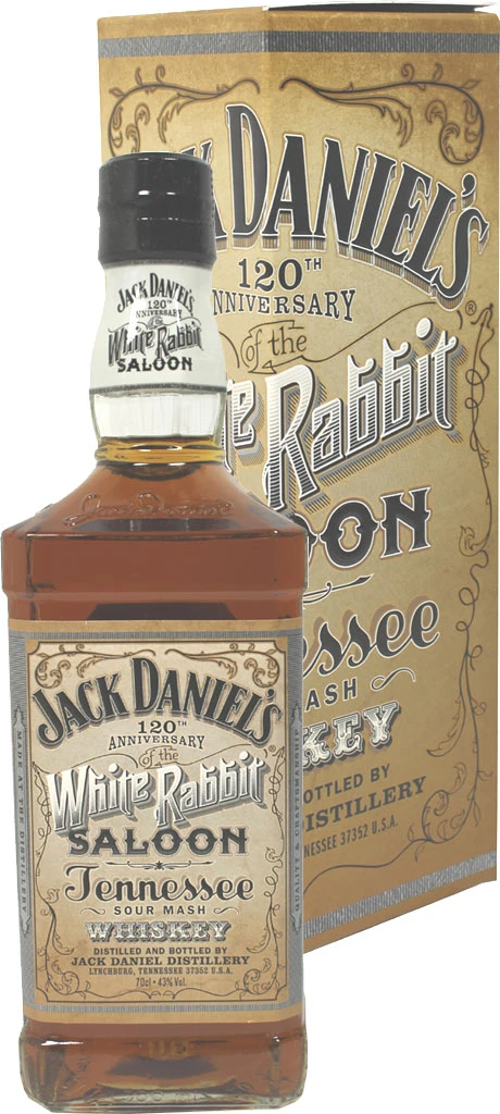 Leider gehört dieser berĂŒhmte White Rabbit Saloon heute der Vergangenheit an, da Lynchburg in einem so genannten „dry county“ liegt, in dem kein Alkohol verkauft werden darf. Diese limitierte Auflage erinnert jedoch wieder an diesen legendĂ€ren Saloon, weswegen auch das Etikett im Stil eines typischen Saloons aus dem „Wilden Westen“ gehalten ist: Schriftzug und die sich um das Etikett ziehenden Ranken versetzen uns in eine Zeit zurĂŒck, als echte Kerle noch frei und ungehindert ihren echten Whiskey trinken konnten! AbgefĂŒllt wird der Jack Daniel’s White Rabbit Saloon Tennessee Whiskey, wie er mit vollem Namen heiĂt, mit einem Alkoholgehalt von 43 %, womit er etwas stĂ€rker ist als der weltbekannte Jack Daniel’s Old No. 7, der „nur“ 40 % aufweist.