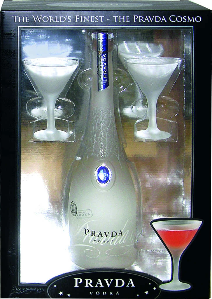 Pravda Vodka, einen der besten Vodkas der Welt, bieten wir Ihnen nun auch in einem eleganten Geschenkset an, bestehend aus einer halben Flasche Pravda Vodka mit 0,35l Inhalt und einem dazu passenden, formschönen Glas – mit diesem Geschenk werden Sie bei jedem Vodka-Liebhaber Ehre einlegen!