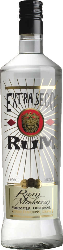 Rum von Malecon in der 1 l Flasche mit 37,5% Vol. Alc. mit Farbstoff