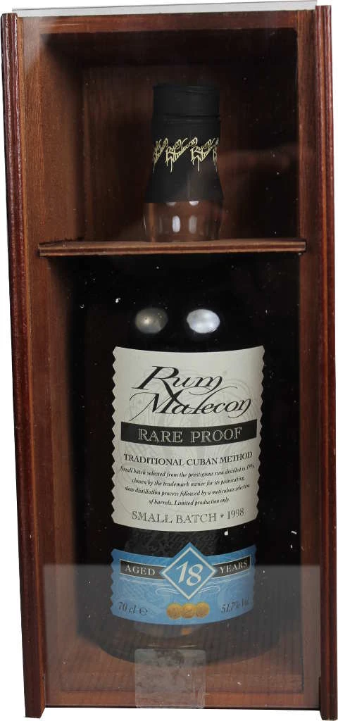 Rum von Malecon in der 0,7 l Flasche mit 51,7% Vol. Alc. mit Farbstoff