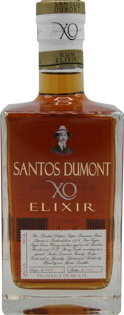 Spirituose von Santos Dumont XO in der 0,7 Liter Flasche mit 40% Vol. Alc. und Farbstoff