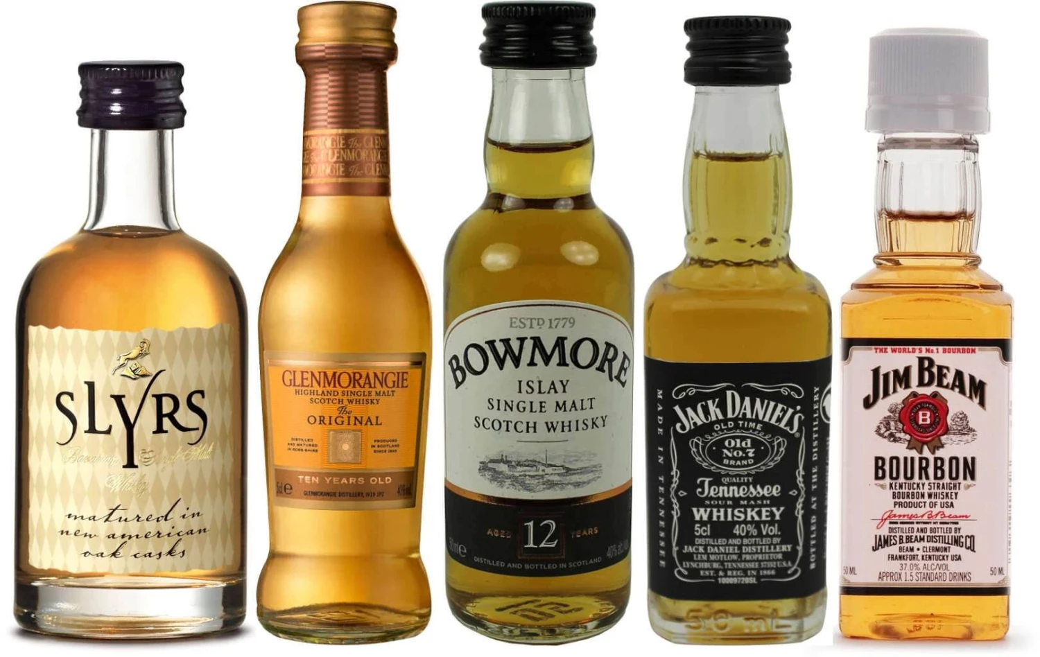 Unser Whisky Tasting Set Worldwide enthĂ€lt die beiden weltberĂŒhmten Whiskeys Jack Daniels sowie Jim Beam, beides Amerikaner und jeder auf seine Weise etwas Besonderes. Des Weiteren sind die beiden Schotten Glenmorangie 10 Jahre und Bowmore Whisky 12 Jahre vertreten. Und mit Slyrs Bavarian Single Malt ist auch ein deutscher Whisky vertreten.