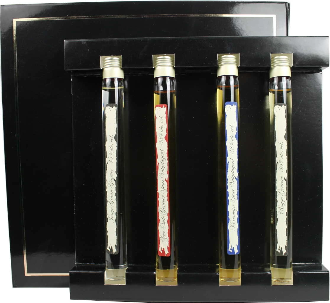 In diesem Set sind vier verschiedene Genever der renommierten hollĂ€ndischen Traditions-Destillerie Zuidam enthalten, die schon seit vielen Jahren fĂŒr ihre hervorragenden Genever bekannt und geschĂ€tzt ist. Dem Kenner bietet dieses Set die einzigartige Möglichkeit, die Höchstleistungen der Destillerie miteinander zu vergleichen, wĂ€hrend der Neueinsteiger vier ausgezeichnete Genevers erhĂ€lt, die ihm einen unvergesslichen Einstieg in die Welt der Wacholderdestillate gewĂ€hren. Die Zuidam Destillerie ist schon seit vielen Jahren ausschlieĂlich Hersteller von QualitĂ€tsspirituosen und stellt in mĂŒhsamer Handarbeit seine hervorragenden Genever her. Aus diesem Grund ist dieses Geschenkset die perfekte Möglichkeit, einem echten Gin- und Geneverkenner seine WertschĂ€tzung zu zeigen.